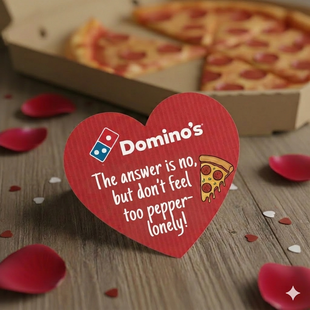 Not interested in that Valentine’s request this year? Looking to tastefully reject them? Try Domino’s Valentine’s Day rejection cards, complete with a coupon for a free pan pizza!